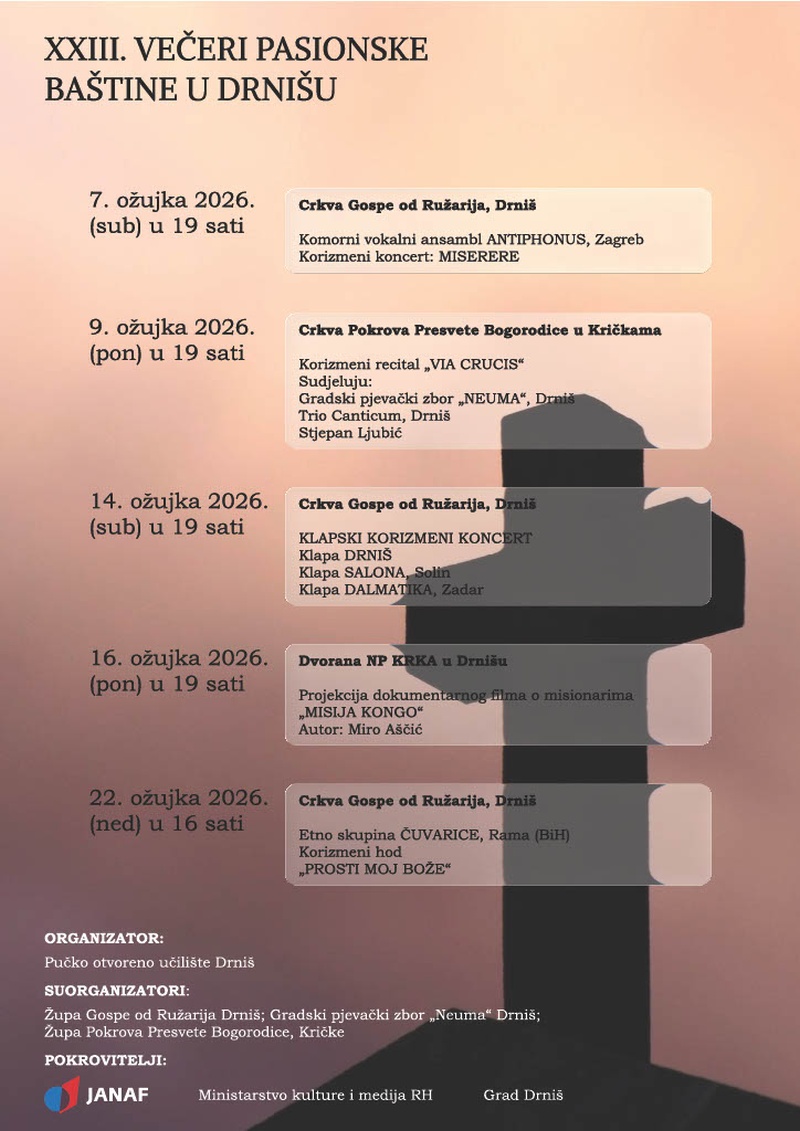 NAJAVA: XXIII. VEČERI PASIONSKE BAŠTINE U DRNIŠU