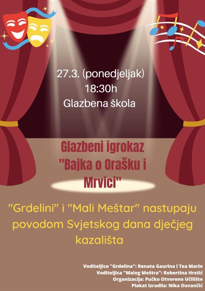 Premijera "Bajka o Orašku i Mrvici" nastao je kao glazbeno-scenski igrokaz u suradnji "Malog meštra" i Gradskog dječjeg zbora "Grdelini", prema istoimenom izvornom tekstu Sunčane Škrinjarić.